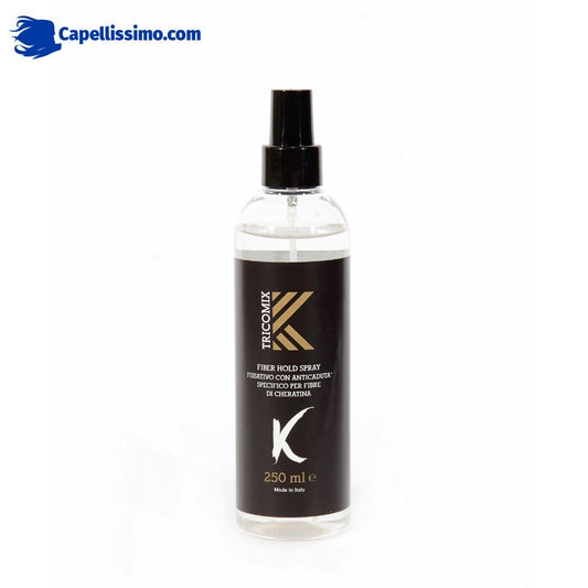 Il Fiiber hold, è una speciale lacca fissante studiata per le fibre di cheratina. Questa lega meglio le polveri ai capelli, prolungandone la tenuta e migliorando il risultato estetico.