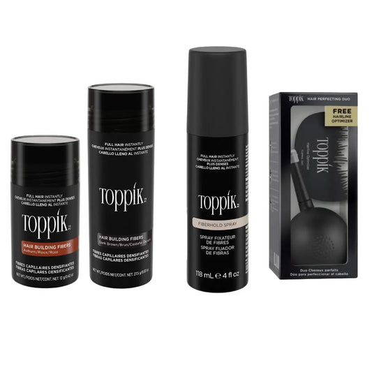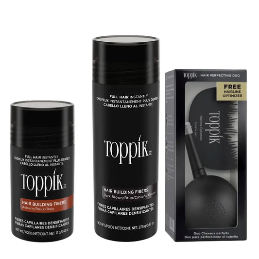 Toppik è un marchio americano, famoso in tutto il mondo per le sue Microfibre di cheratina. Queste sono delle speciali polveri per l’ispessimento istantaneo di capelli diradati e zone di calvizie. Contengono cheratina naturale, la stessa proteina di cui sono composti i capelli, e offrono un risultato estetico perfetto.